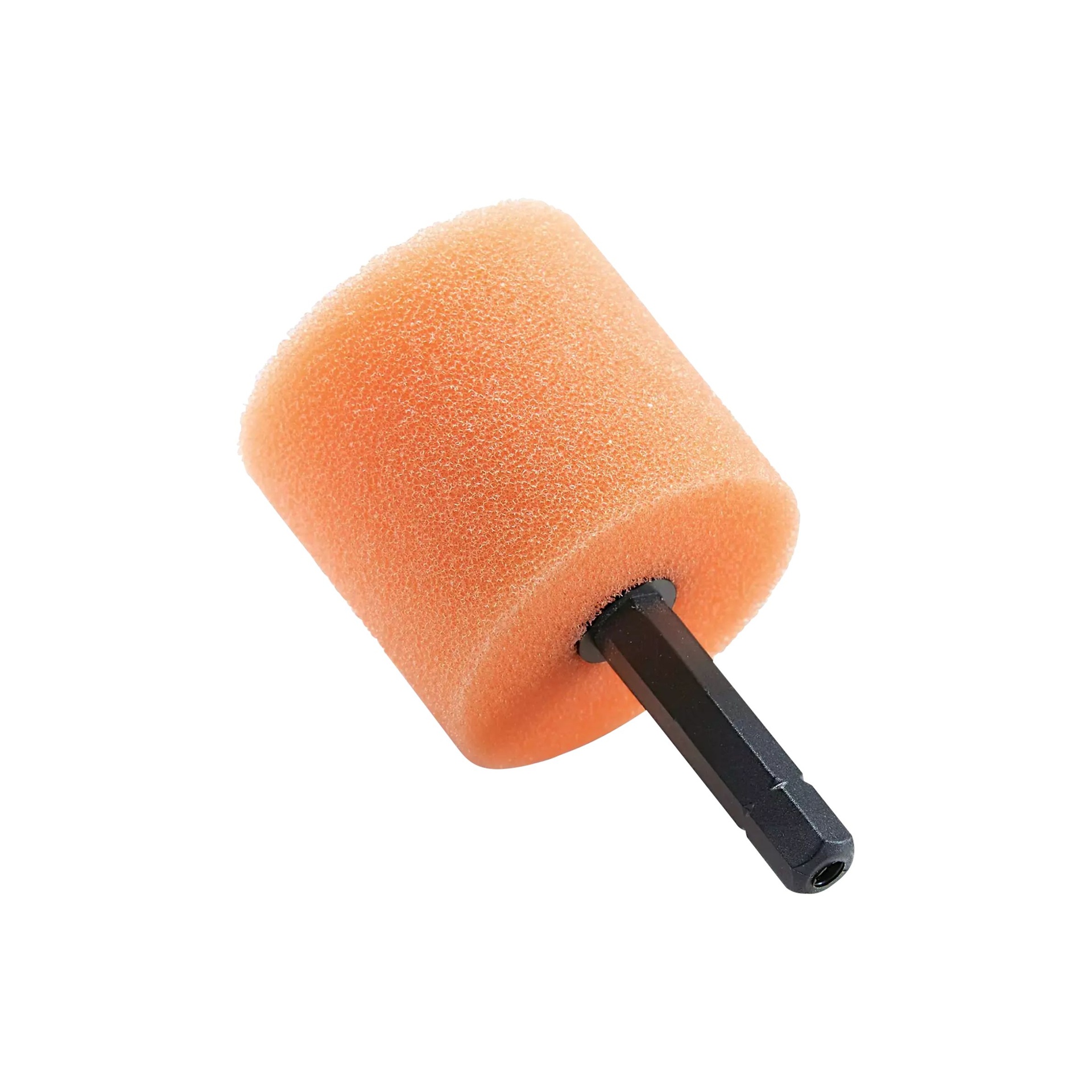 Éponge orange avec une structure en mousse fine pour une finition et une brillance élevée. Forme cylindrique idéale pour les bandes étroites et les réparations ponctuelles. Changement sans outil grâce au support de porte-embouts à 6 points sur la tige.